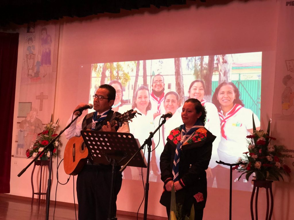 Después de una eucaristía presidida por el P. Provincial de México Marco Antonio Vélez, se presentaron en el salón de actos diferentes realidades escolapias. Julio Carrión y Nancy Galán, de la fraternidad escolapia de Puebla, fueron exponiendo de manera dinámica distintas obras escolapias, combinando los testimonios con vídeos y bailes. Una mañana intensa para conocer la rica realidad escolapia y experimentar la hospitalidad de los hermanos mexicanos.