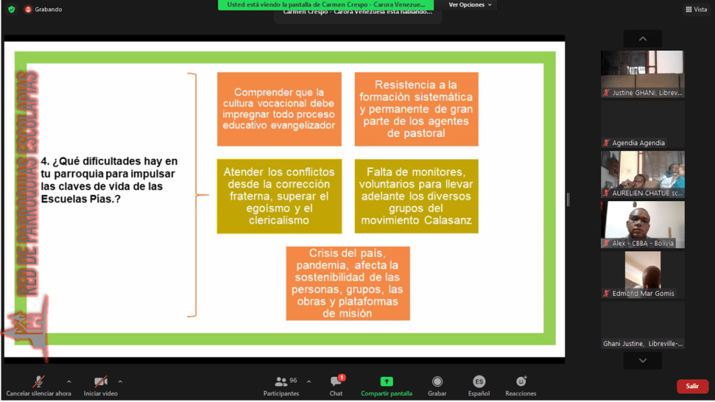 Hoy en la última jornada de la 1ra Asamblea de Red de Parroquias Escolapias, iniciamos con la oración con el P. Asdrúbal de Medellin. Seguidamente, las experiencias pastorales de las parroquias de África, América y Europa.