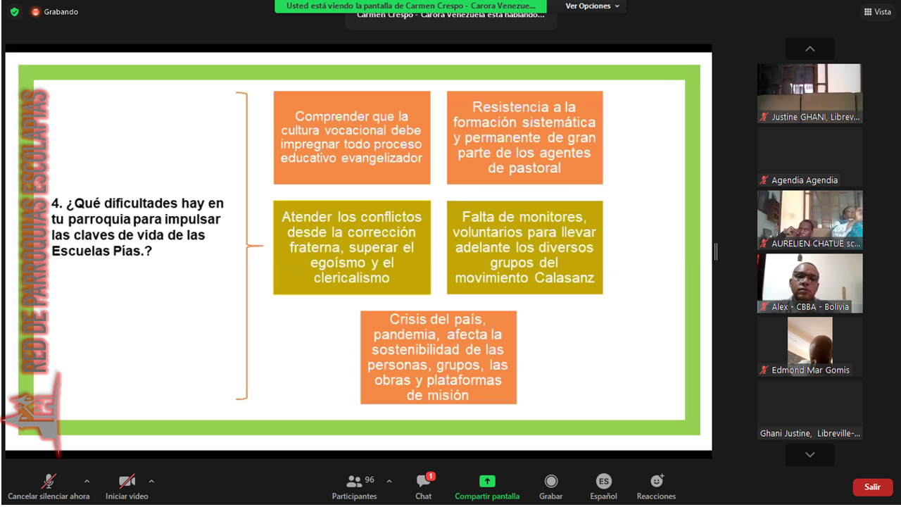 En este segundo día desarrolló con la oración de inicio, luego pasamos a las sesión de compartir las ricas experiencias de las parroquias escolapias en África. Posteriormente, un breve descanso.