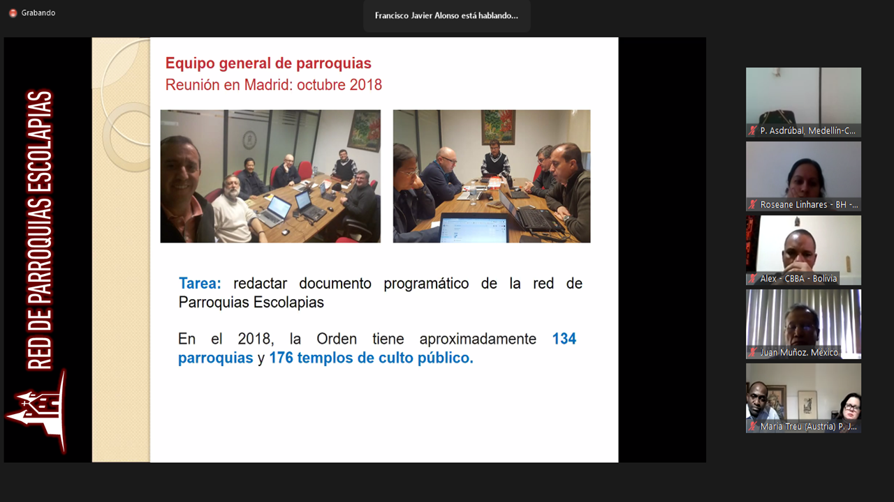 Posteriormente, el P. Javier Alonso nos presentó «Identidad, memorias y proyecto de futuro», donde se nos presentaba todo el recorrido desde los inicios hasta la actualidad de la Red de Parroquias Escolapias